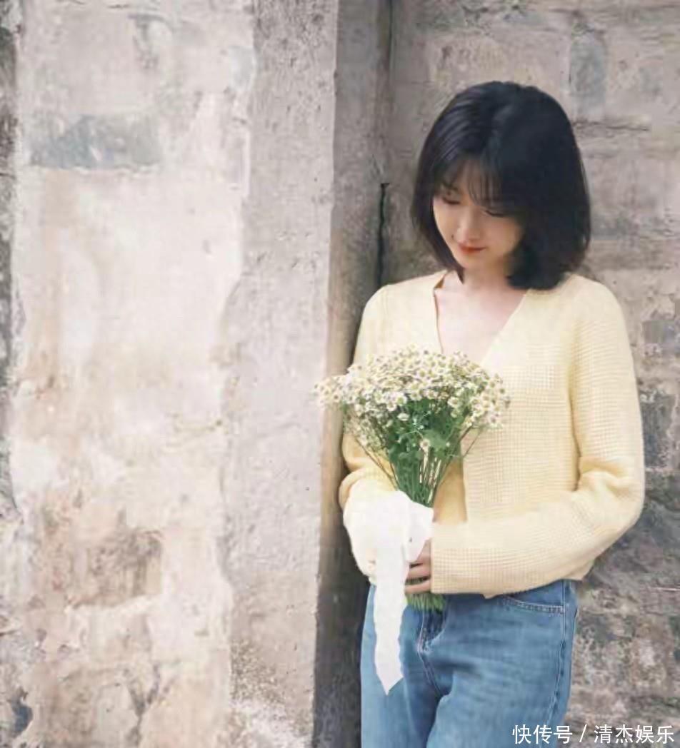 镜头下的她,身着一件柔软的V领米黄色针织衫。米色,一个自带温柔滤镜的颜色,不张扬,不抢眼,却能瞬间提升整体造型的质感与高级感。V领的设计恰到好处地拉长了颈部线条,露出精致的锁骨,为温婉的气质中注入了一丝恰到好处的性感与清爽。针织衫的柔软质地贴合身形,勾勒出她纤细的身材,传递出一种被温柔包裹的舒适感。